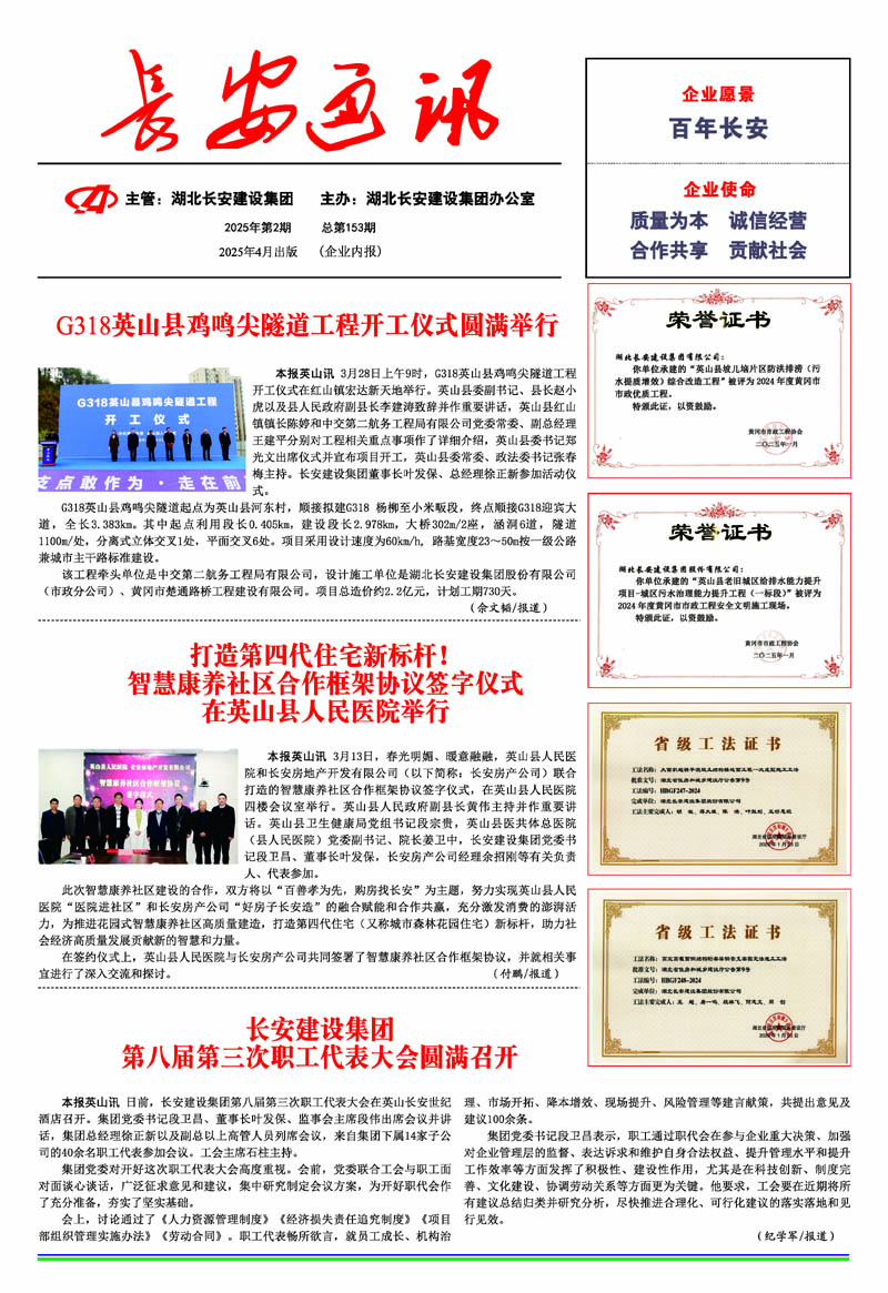 • 2025-11-03 長安建設集團聘任徐正新同志為湖北長安建設集團股份有限公司總經理、余招剛同志為英山縣長安房地產開發(fā)有限公司總經理